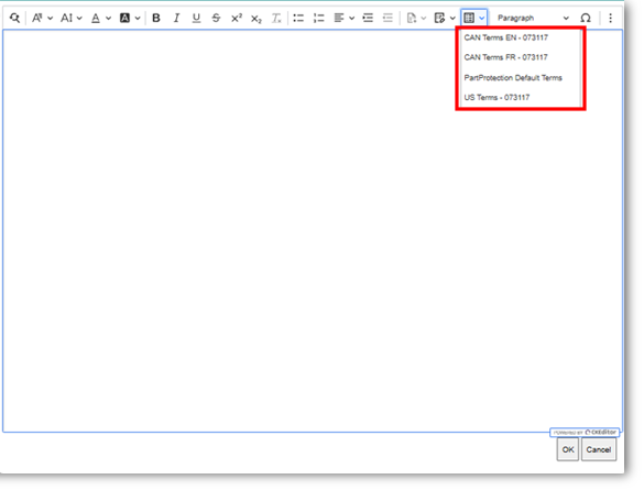- A new entry for Custom Terms & Conditions appears. Double-click the text box next to it.